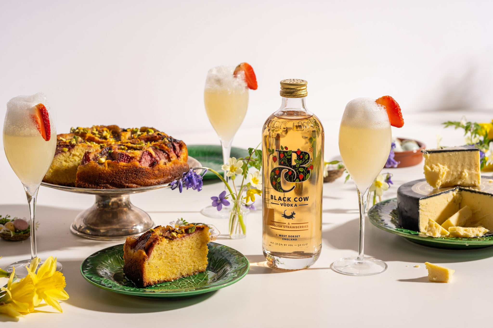 A fragrant almond and polenta cake soaked with honey and Black Cow & English Strawberries syrup. Serve alongside a light Strawberry & Lemon Sgroppino for a celebratory Easter pairing.