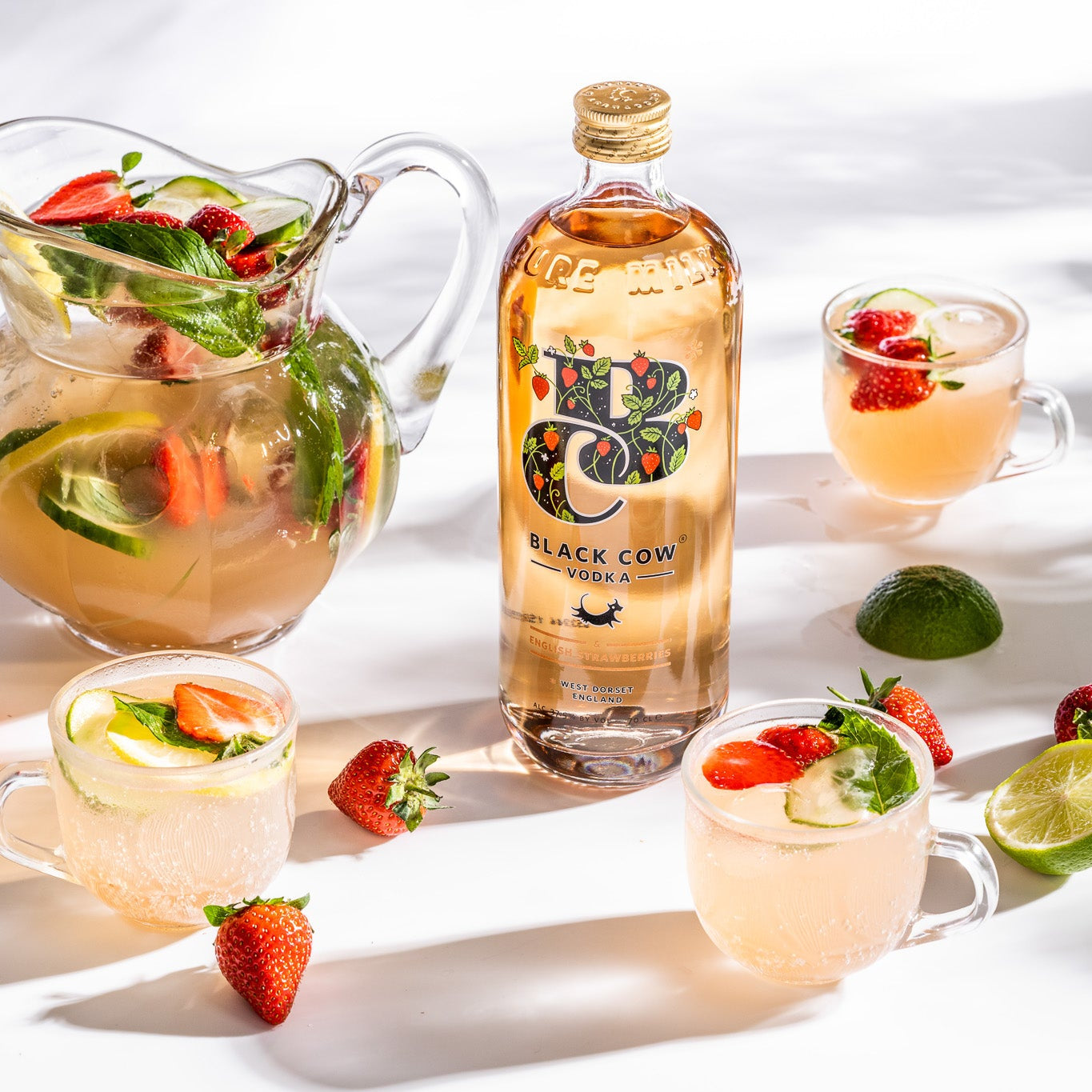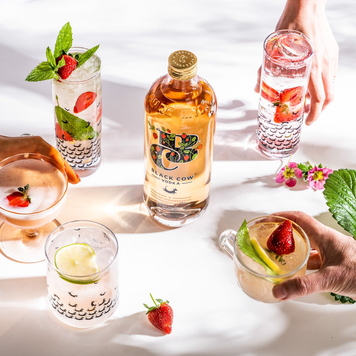 Locally sourced, leftover or misshapen English strawberries that would otherwise go to waste are pressed and infused in Black Cow to create a fresh, light vodka with the unmistakable taste of freshly-picked strawberries.