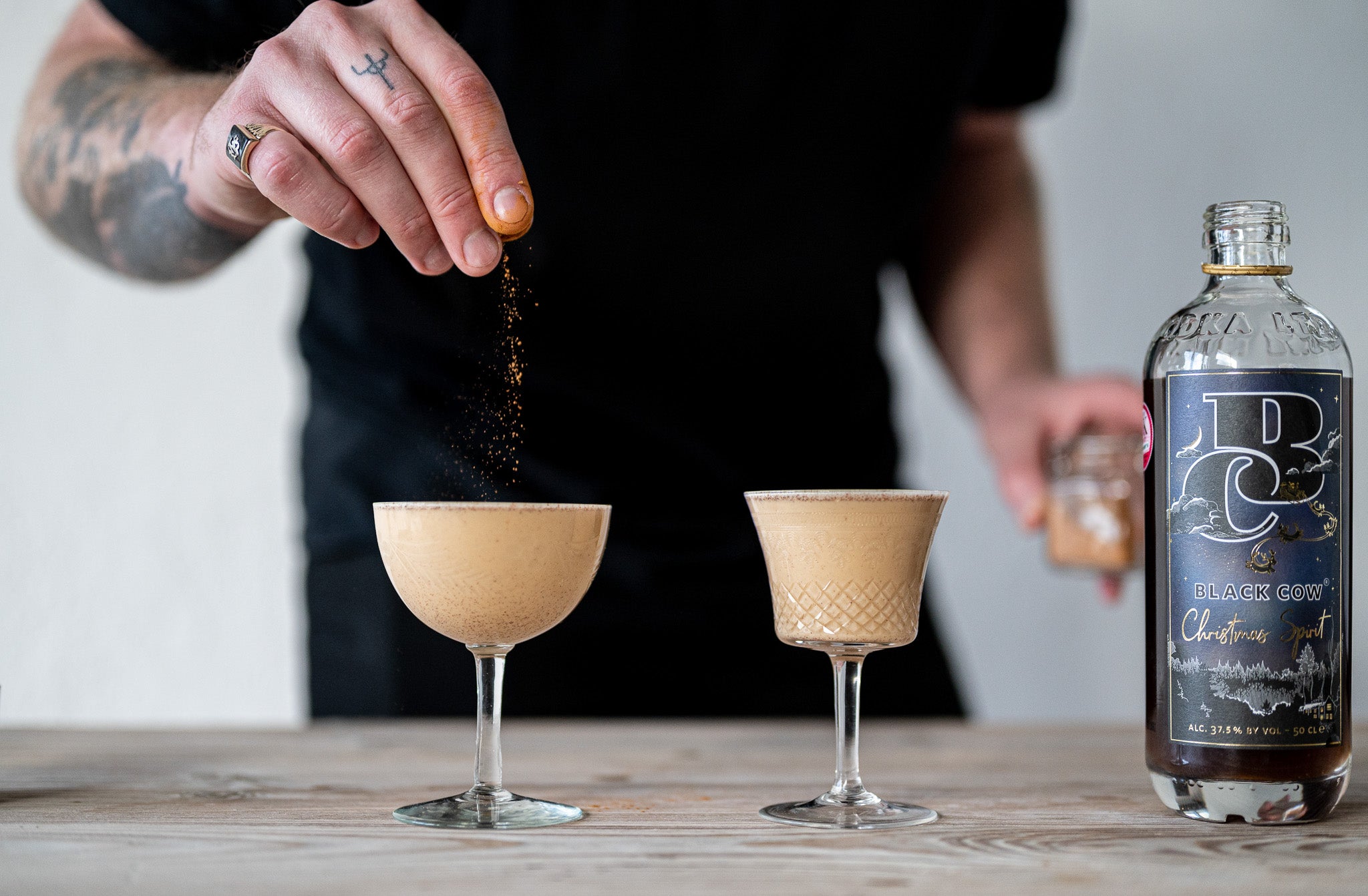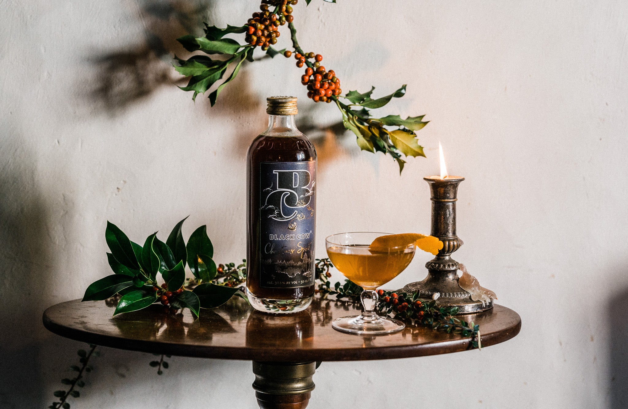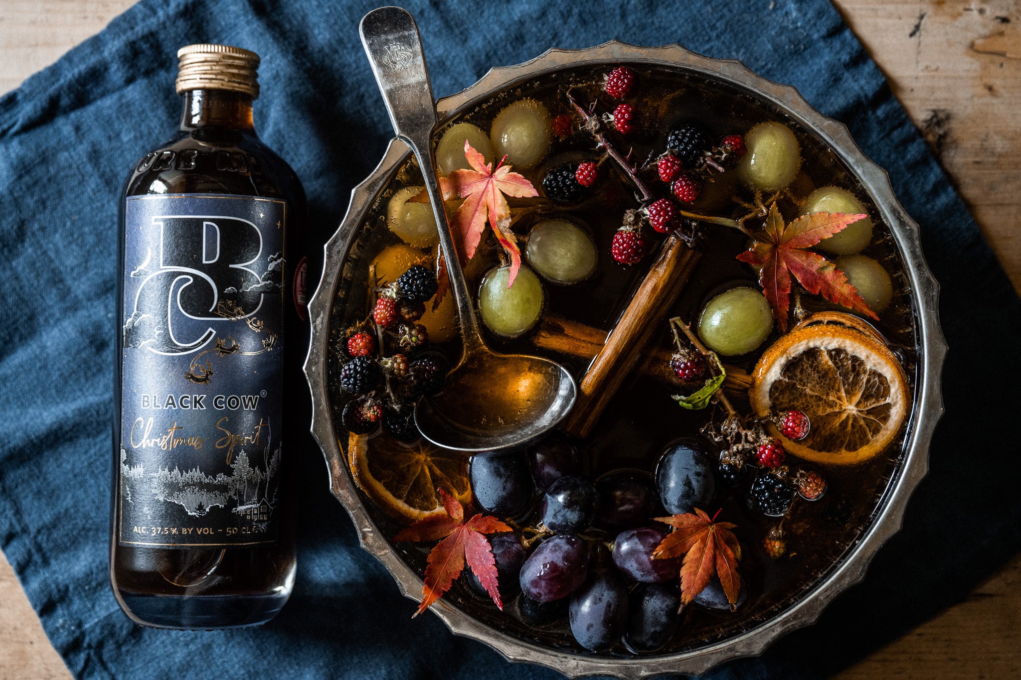 GO TO RECIPEA warming cocktail for a winter’s night. Black Cow Christmas Spirit warmed with cloudy apple juice.