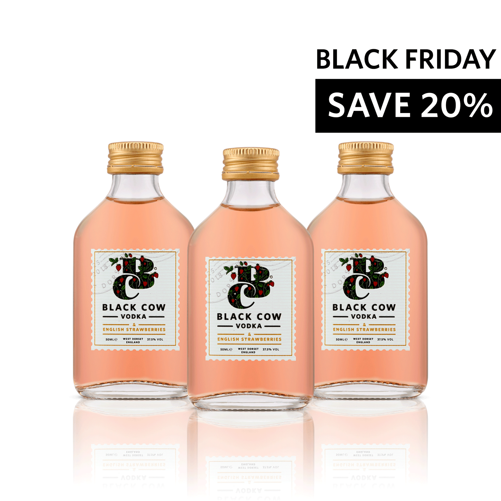 Black Cow & English Strawberries, 3x 5cl miniature bottles, 37.5% ABV.