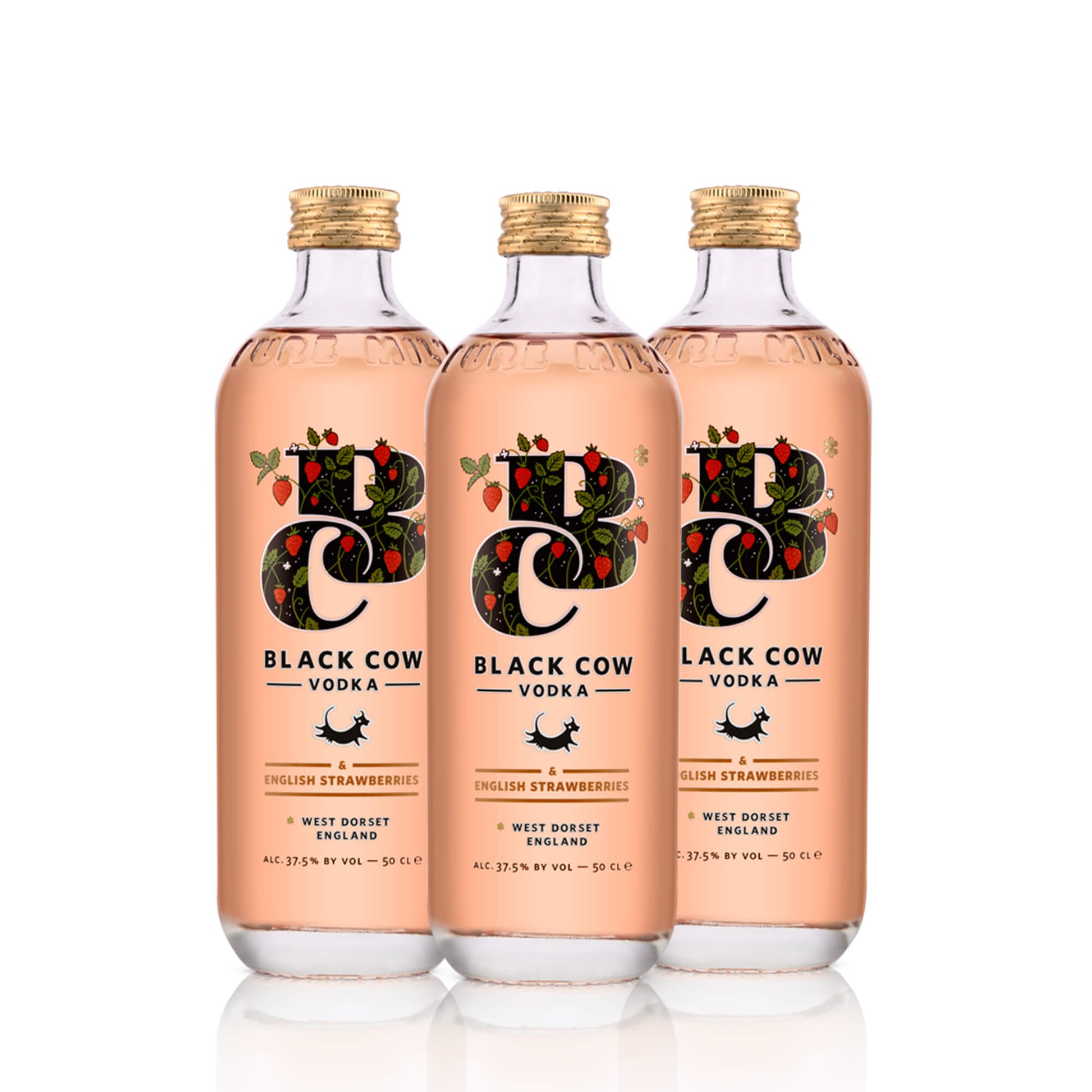 Black Cow & English Strawberries, 3x 50cl or 70cl bottles, 37.5% ABV.