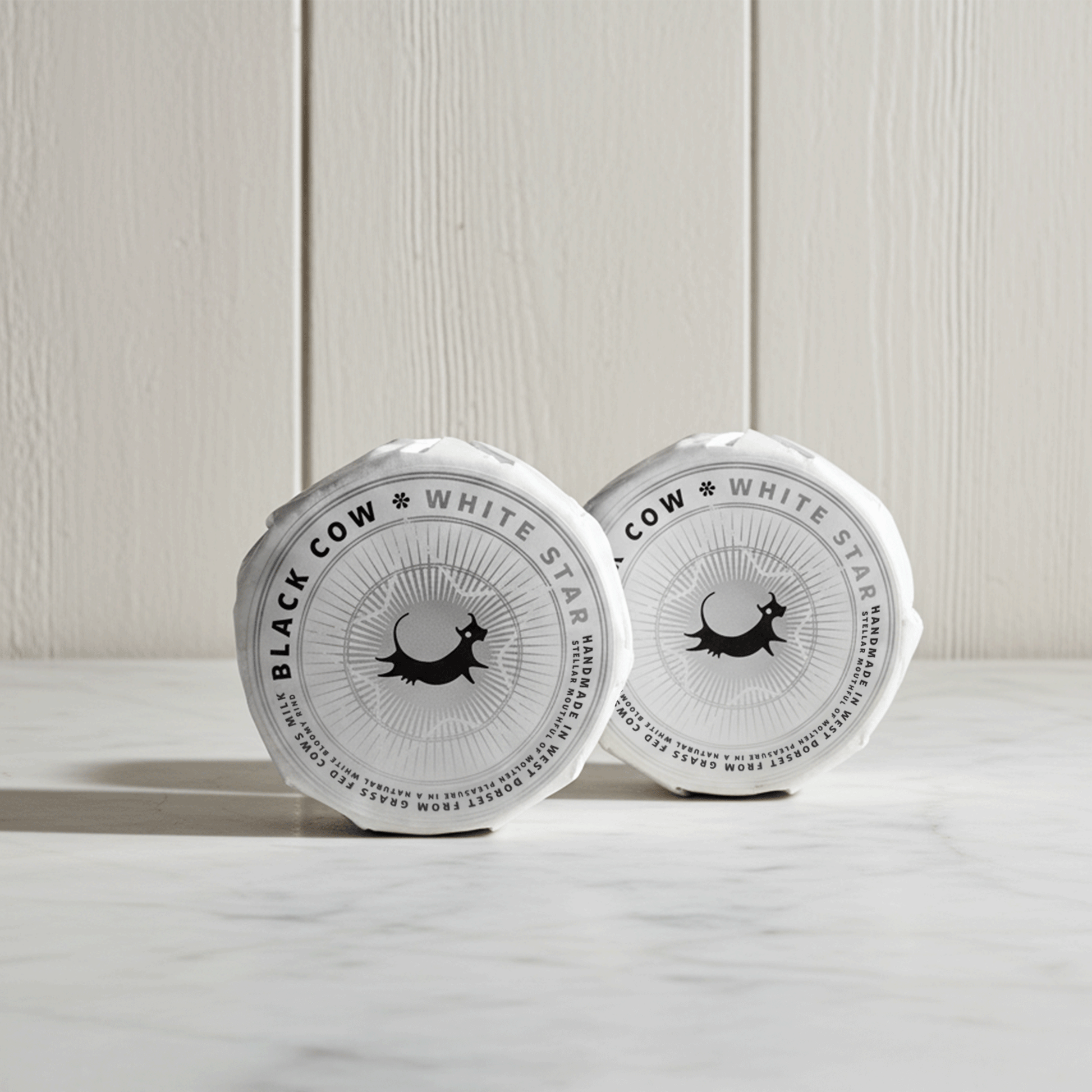 Crafted from the freshest morning milk from Jason’s herd of 250 West Dorset grass-grazed cows, Black Cow White Star is the result of a year of tasting and testing. This British soft white cheese features a natural bloomy rind and boasts a creamy flavour profile, complete with a soft, yellow curd that melds buttery and farmhouse tastes into a singular experience of molten pleasure.